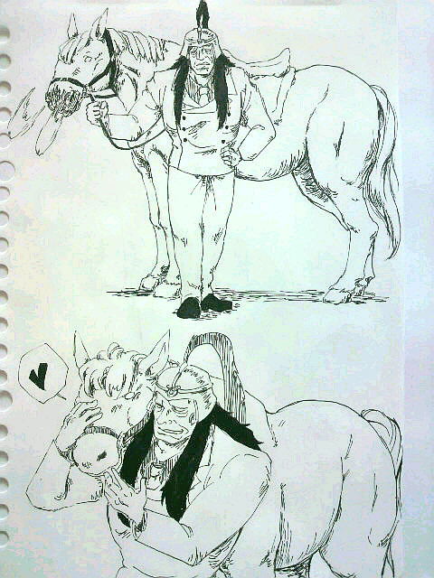 ペルシュロンみたいな荷引きの馬でないと、身長二メートルあるオニグモさんにちょうどいい感じにならんのです。